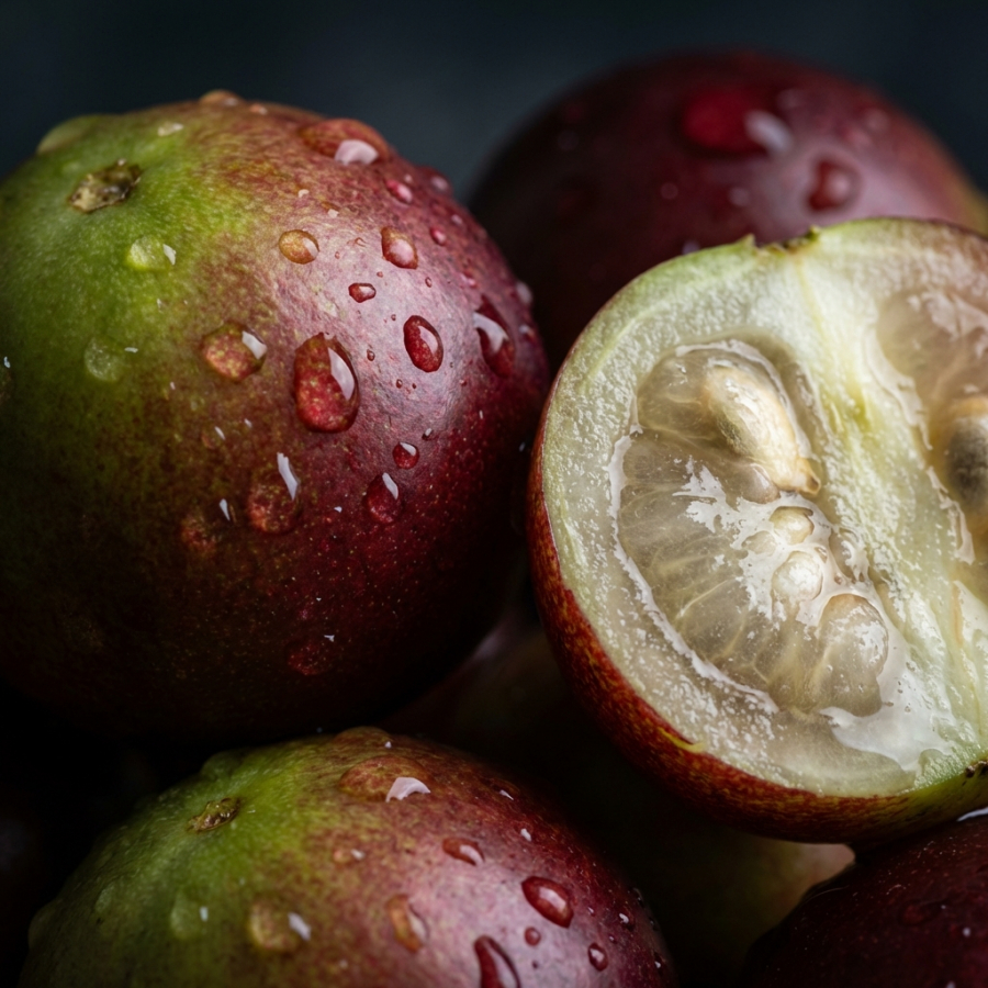 Camu Camu (Myrciaria dubia) grows in the flooded forests of the Amazon basin. During the rainy season, the trees stand submerged in water for months — yet continue to fruit abundantly. This extraordinary resilience is reflected in the fruit's nutritional density: as if the tree concentrates the vitality of the entire rainforest into each cherry-sized berry. The harvest is done by hand from small boats navigating the flooded forest, making it one of the most unique harvests in the world.
