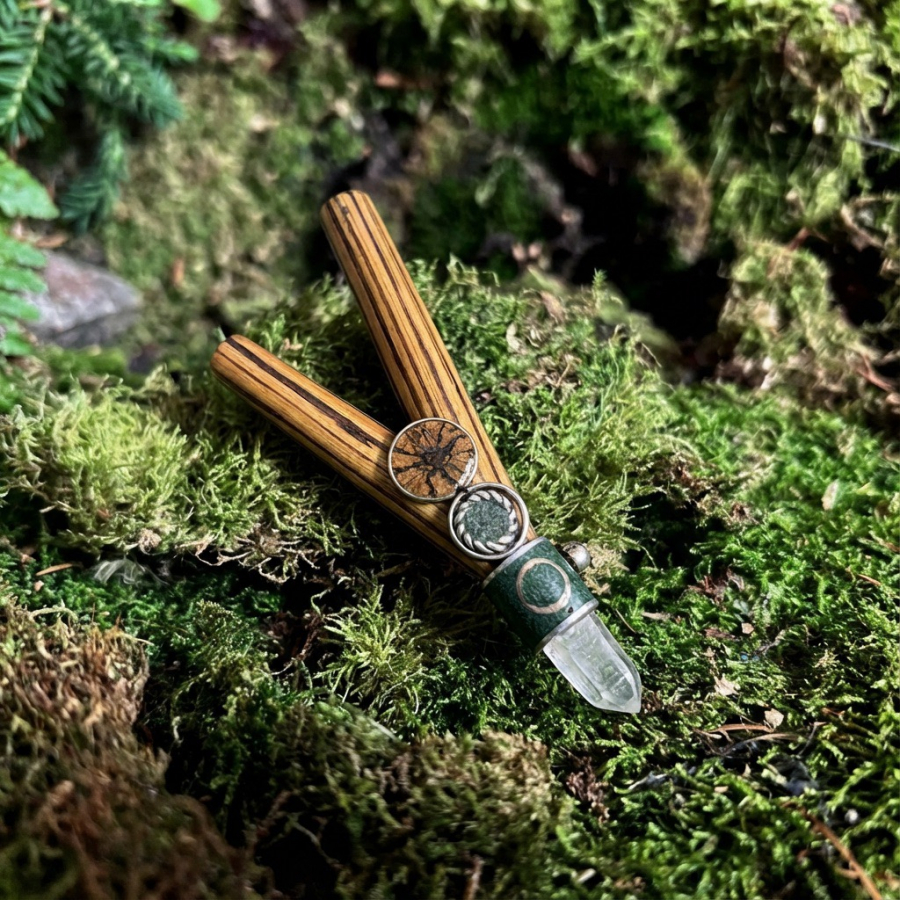 Tradition: The ayahuasca vine in kuripe symbolizes connection with Amazonian spiritual wisdom and together with crystal creates an energetic bridge between physical and spiritual realms of ceremonial work.