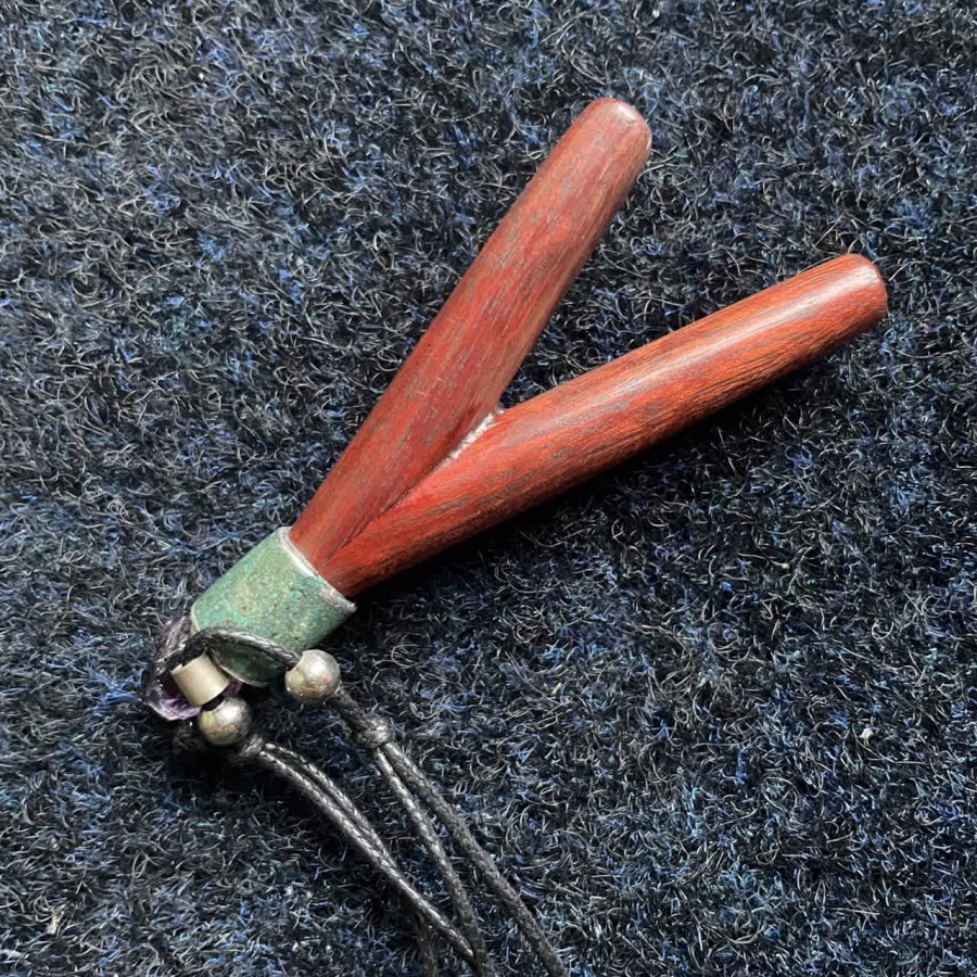 Material: Crafted from solid Amazonian wood combined with raw ayahuasca vine piece (Banisteriopsis caapi), which in shamanic tradition represents the "soul" of ceremonial practice.